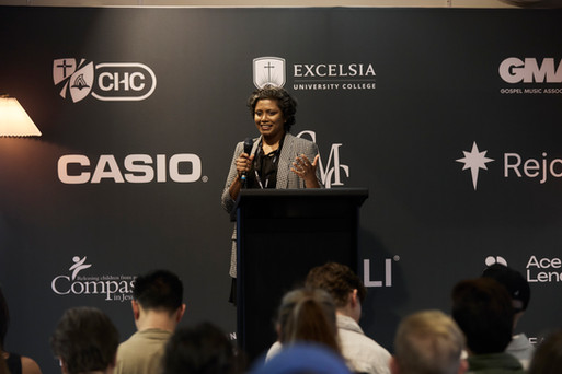 The first keynote came from Bhavani Williams from CCLI, who spoke on “C³: Church, Copyright and Creatives.” Her session unpacked the relationship between churches, songwriters and licensing, offering valuable insight into how worship music travels through both congregations and digital platforms. One of her most stand-out insights was that 50% of Australians are currently discovering new worship music through YouTube, while 43% are discovering it through CCLI. She also noted that many of the most impactful songs today are being written through collaboration, highlighting how community continues to shape the modern worship landscape (which we love).